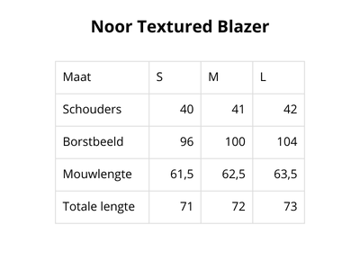 De Noor blazer is een echte eyecatcher met haar luxe textuur en chique dubbele knopenrij. Dankzij de mooie pasvorm en subtiele details geeft deze blazer je look direct een elegante en krachtige uitstraling. Draag hem op een stoere jeans voor een trendy contrast of combineer hem met een nette pantalon voor een tijdloze, zakelijke outfit!