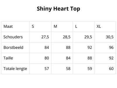 De Shiny Heart Top is een echte musthave voor je zomerse garderobe. Het is een mouwloos model dat supermooi aansluit, perfect voor die warme dagen of om ergens onder te dragen.